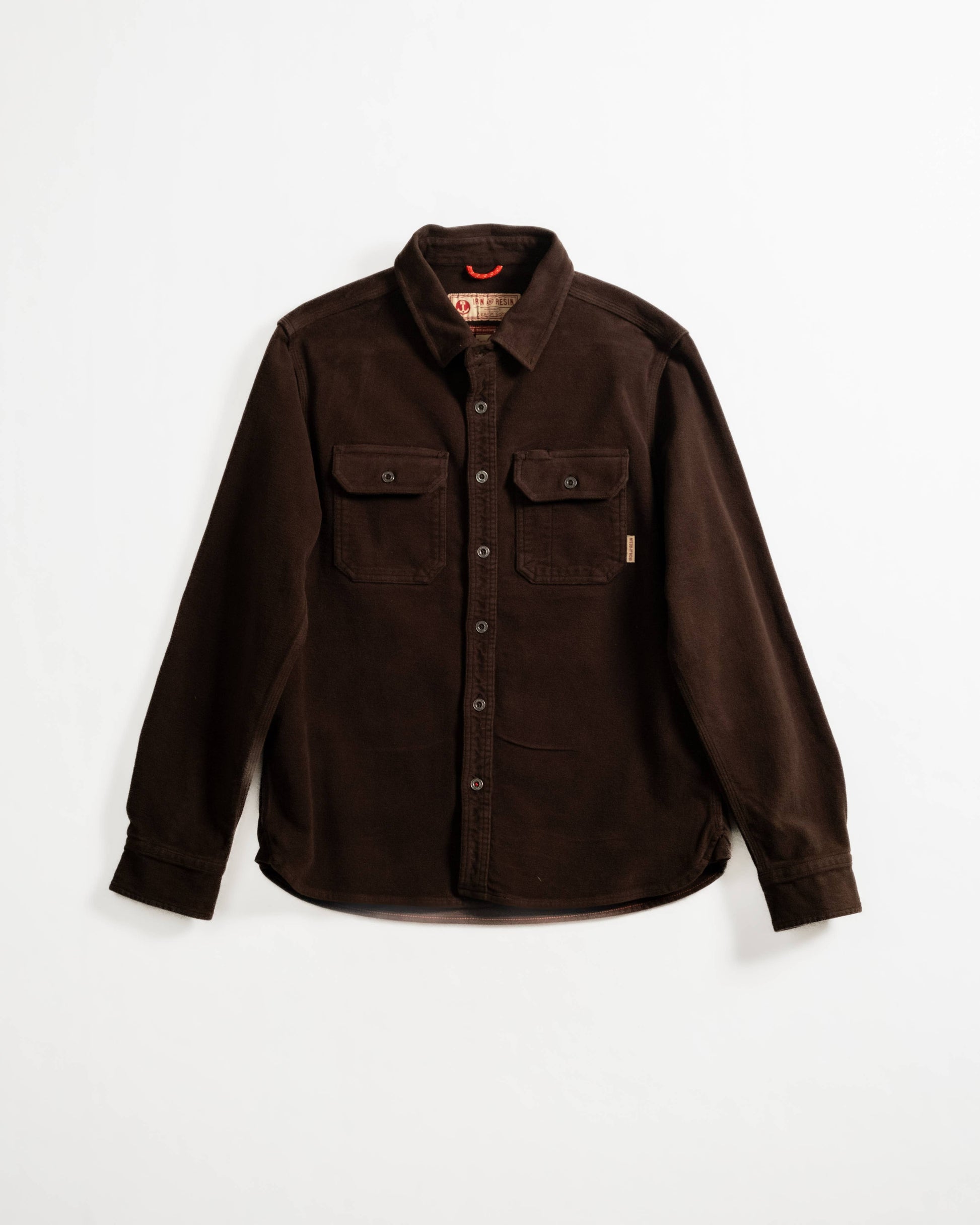 Cut from dense cotton moleskin, this shirt is built for both grit and comfort. Moleskin’s brushed finish makes it soft to the touch yet naturally durable and weather-resistant — a fabric trusted for generations of work and wear. Reinforced seams, custom hardware, and elbow patches give it longevity, while the garment dye and triple wash keep it broken-in from the start. Reinforced with double-needle felled seams and finished with sturdy details, it’s the kind of shirt that works just as well for a day outdoors as it does for an evening in town.
