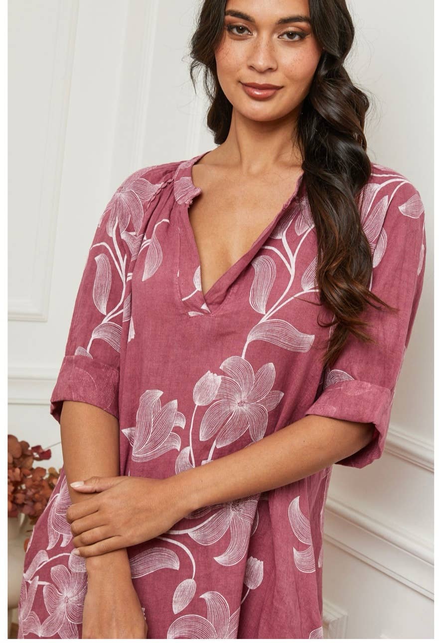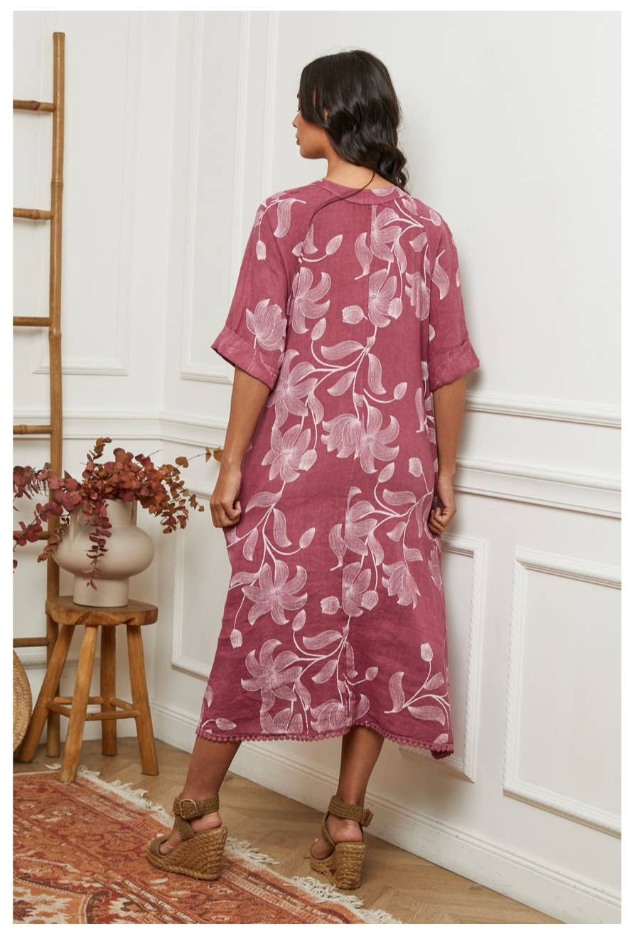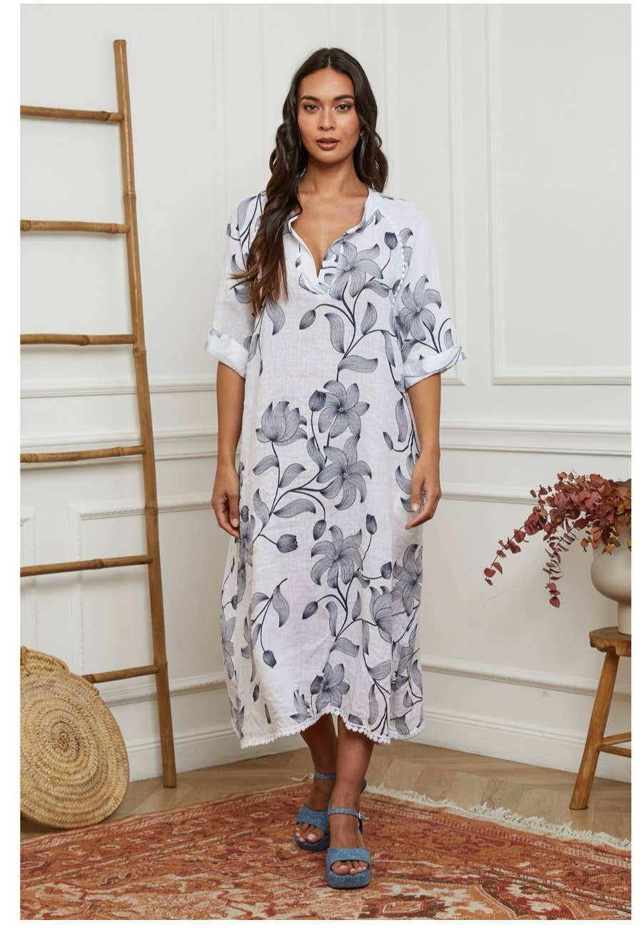 100% linen floral print long dress