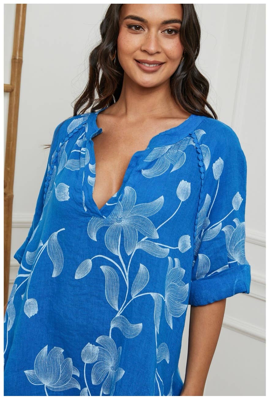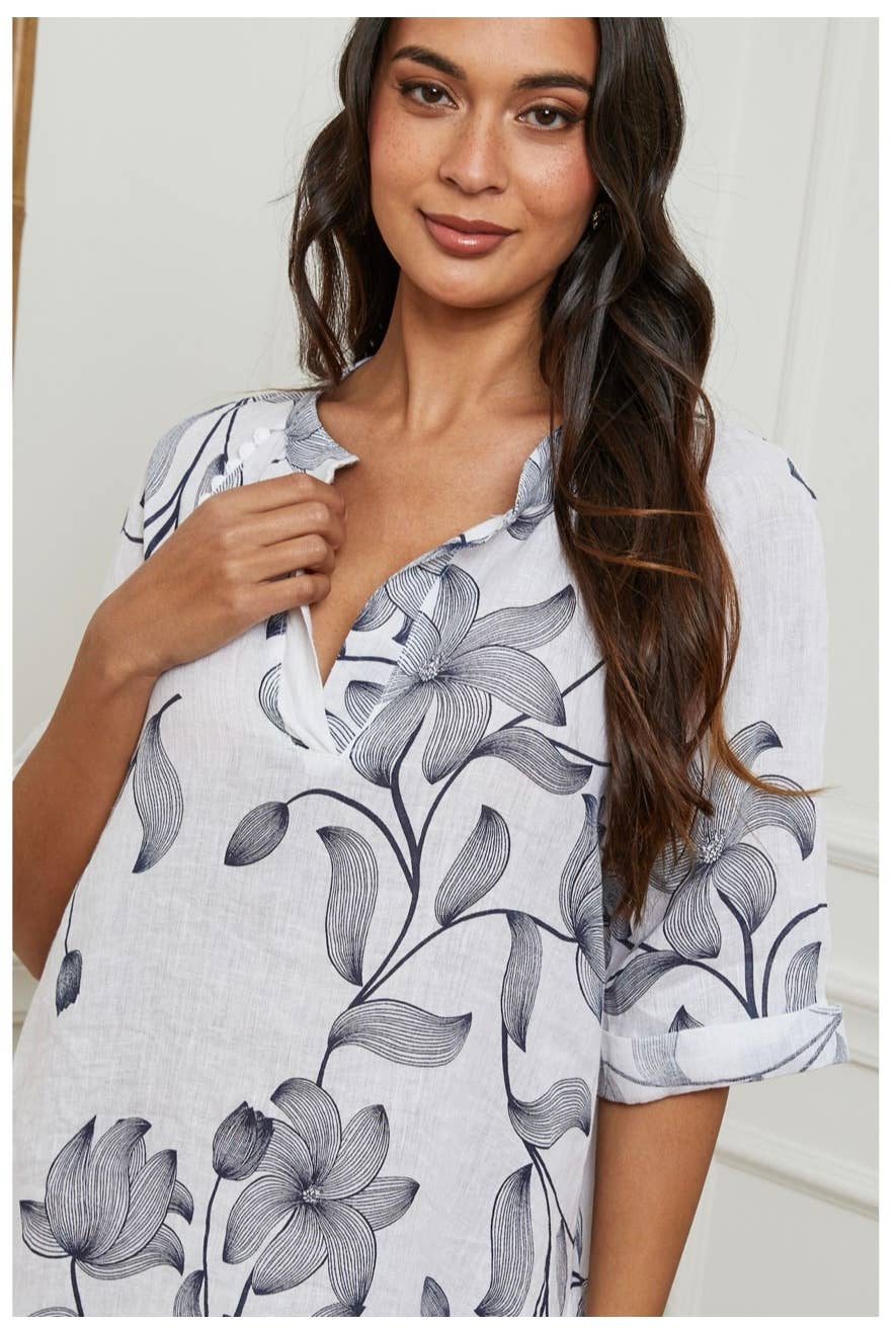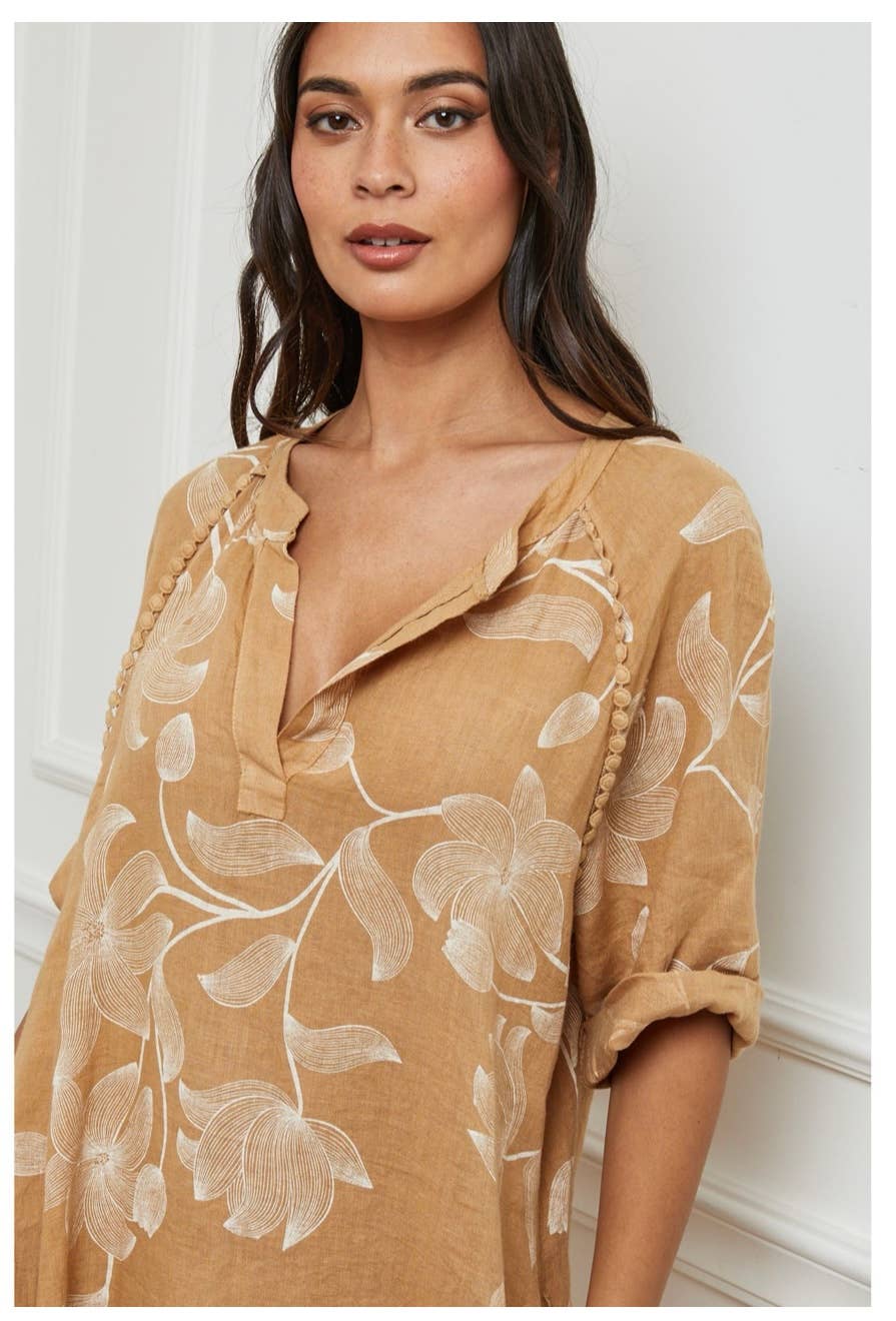 100% linen floral print long dress