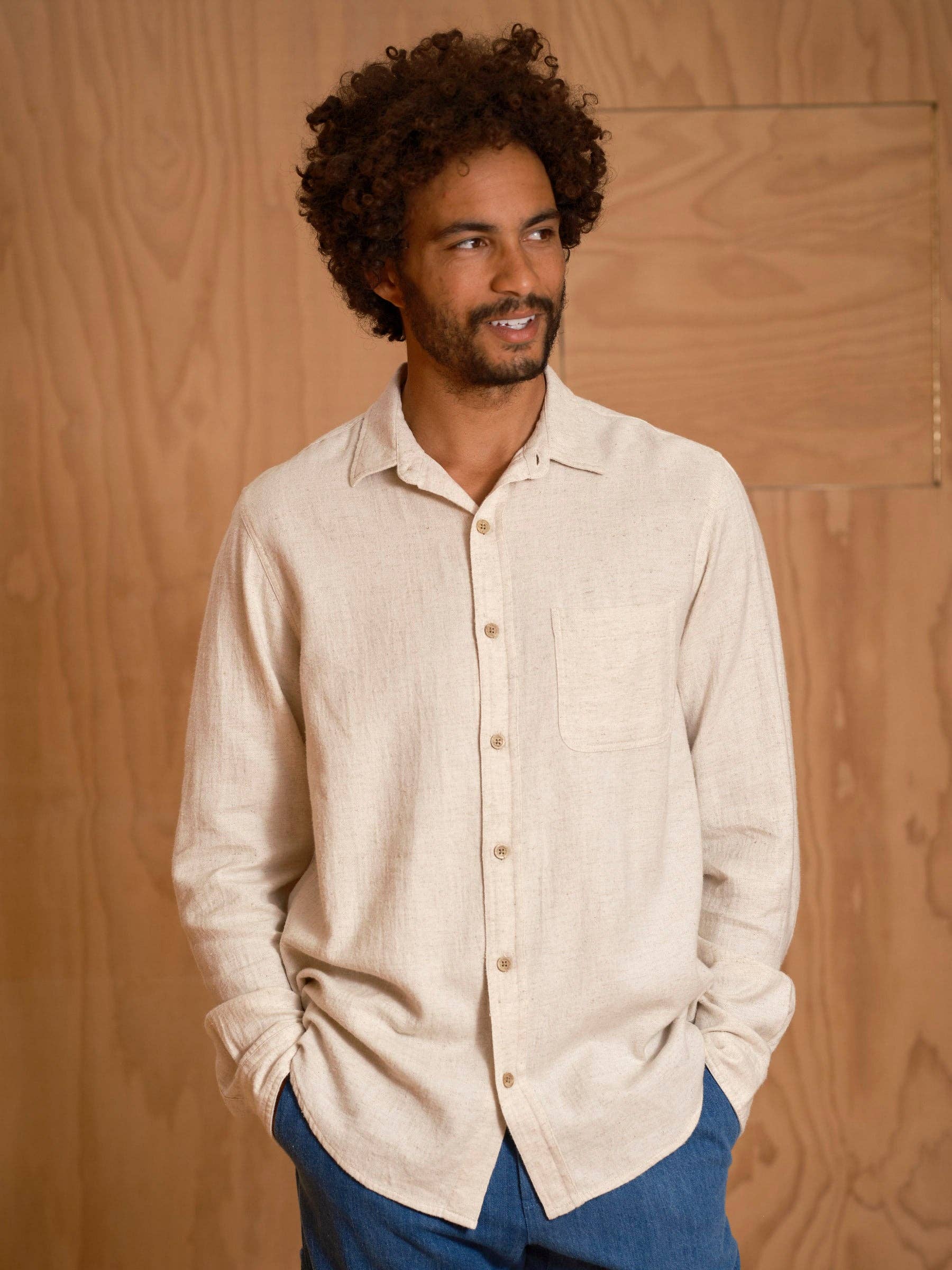 Crafted from unbleached cotton, this flannel shirt offers natural softness and an effortless drape. Designed with a classic chest pocket finished in a subtle baseball stitch, it blends timeless style with thoughtful detail. Made from 100% preshrunk cotton at a socially and environmentally responsible factory, it’s a piece that feels as good as it looks—casual luxury in its most natural form.