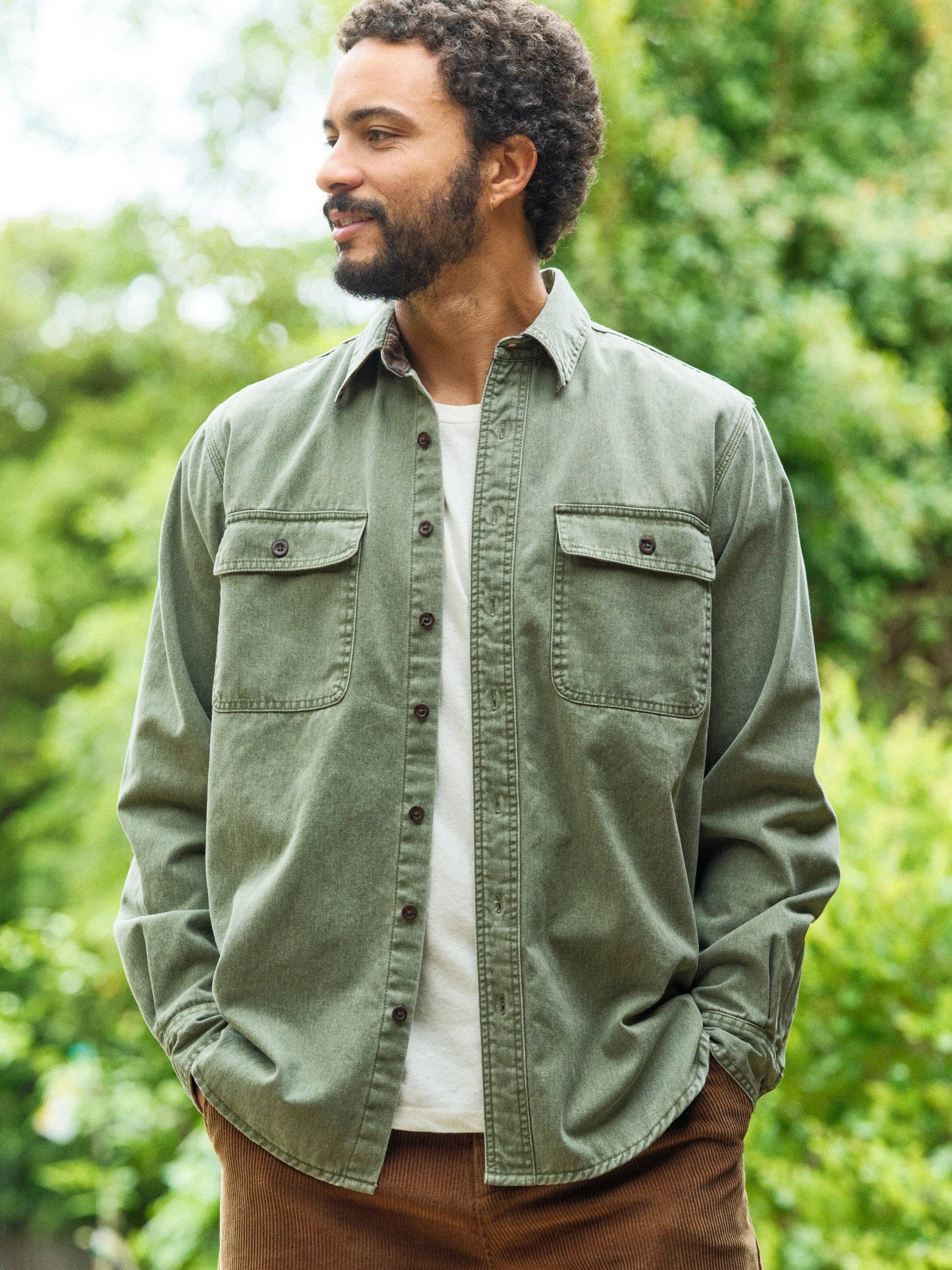 A classic layer elevated for cooler days. This twill overshirt is fully lined with soft plaid flannel, offering warmth and comfort without bulk. The fabric has been gently washed for a lived-in, vintage feel, while the relaxed, true-to-size fit makes it effortless to wear on its own or over a tee. Crafted from 100% preshrunk cotton for lasting quality and ease.